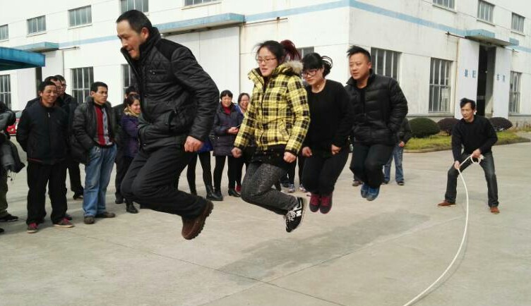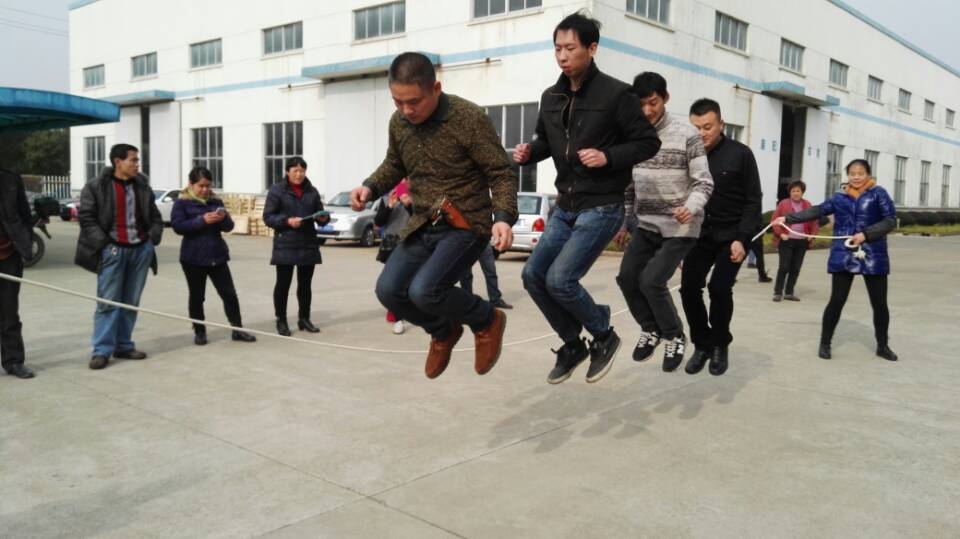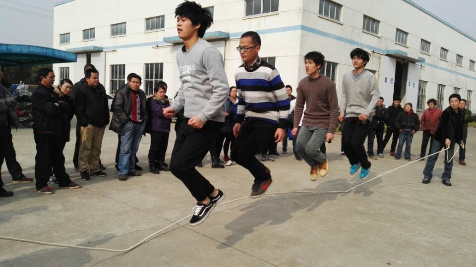 忙碌的2015年结束了,为了放松心情,放松筋骨,提升团队荣誉感,公司于12月30日中午举行了以部门为单位的跳绳比赛。与2014年相比,成绩普通提高,尤其压注车间,2014年跳了5个排名倒数第二,这次一口气跳了62个,一跃成正数第二。办公室娘子军更是厉害,换了一批人仍然获得冠军,并破了上次90的纪录。生产部仍得第三名。技术部进步也很大,得第四名。