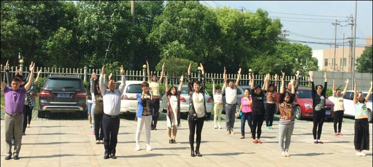 公司为了体现对职工的人文关怀,防止办公人员长期坐着导致颈锥炎和肩周炎,5月18日起,实行办公室人员上午和下午各20分钟班间操制。