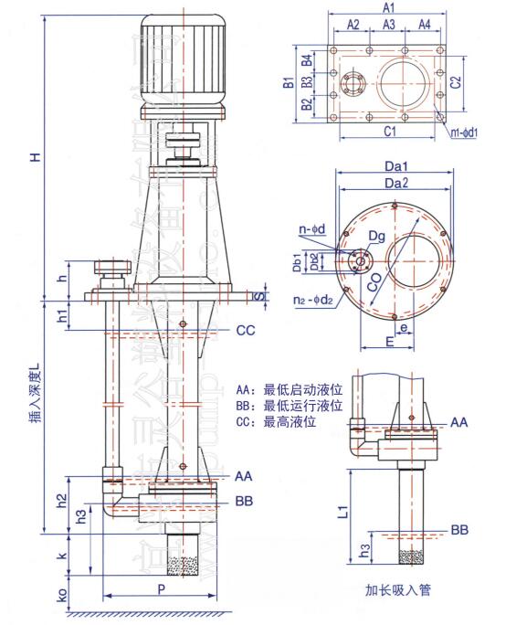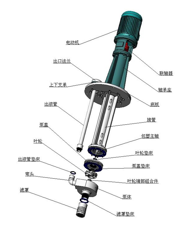 一、概述 FYUB九游(中国)工程塑料悬臂液下泵的过流部件均采用超高分子量聚乙烯(UHMWPE)制作,具有优异的耐腐、耐磨和耐冲击性能;同时,由于采用悬臂轴结构而取消了下部辅助支承,从而彻底解决了下部辅助支承在无法用冷却水冷却和润滑的情况下不耐磨以及泵不能开空车的难题,特别适用于含固量高且不能加冷却水的腐蚀性介质(含固体颗粒的重量浓度≤20%,固体颗粒直径≤1.0mm),该泵的适用温度≤80℃。 二、型号说明