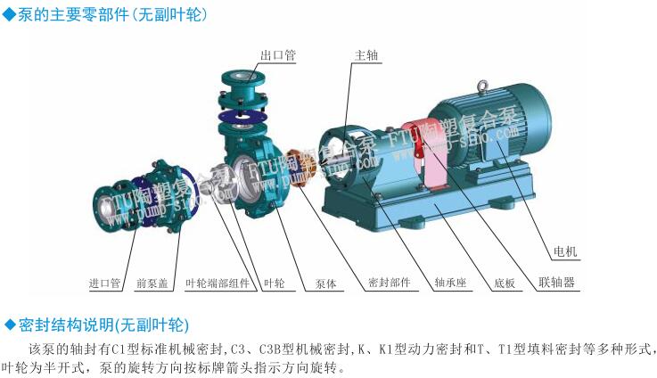 1、从泵的进口看,出口在泵中心左边的泵有:32FTU-15、32FTU-20、40FTU-50、50FTU-30、65FTU-54、80FTU-30、100FTU-40、100FTU-48;