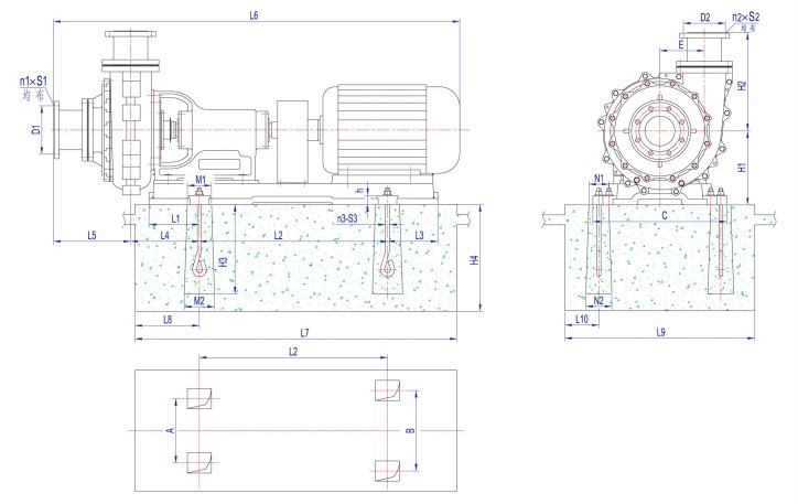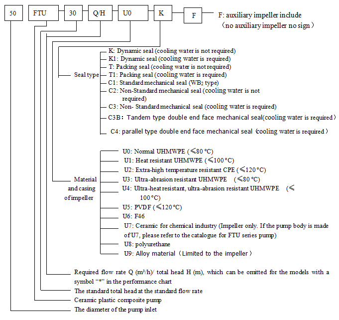 1. View from inlet of pump, outlet is on the left of pump center: 32FTU-15, 32FTU-20, 40FTU-50, 50FTU-30, 65FTU-54, 80FTU-30, 100FTU-40, 100FTU-48;